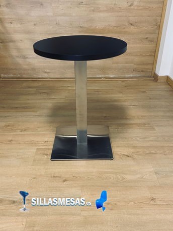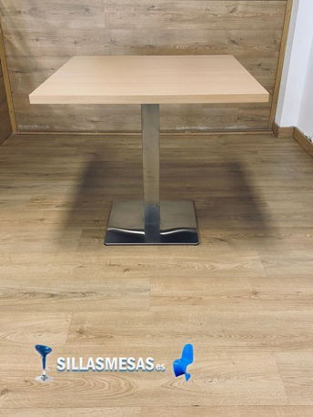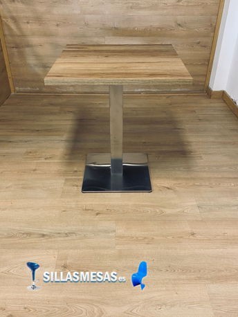 Armazón de mesa de pie central con base de 45x45 cm acero inoxidable y columna de 8x8 cm tambien de acero inoxidable.